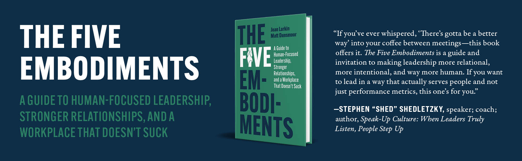 In addition to writing "The Five Embodiments: A Guide to Human-Focused Leadership, Stronger Relationships, and a Workplace That Doesn't Suck," Matt Dunsmoor and Jean Larkin co-founded Octopy, which supports leaders and organizations with human-focused leadership development experiences and cultural transformation.
